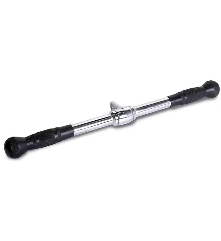 - Algunas de las máquinas favoritas para acoplar la barra recta incluyen poleas ajustables duales, cruces de cables, poleas altas y remos.