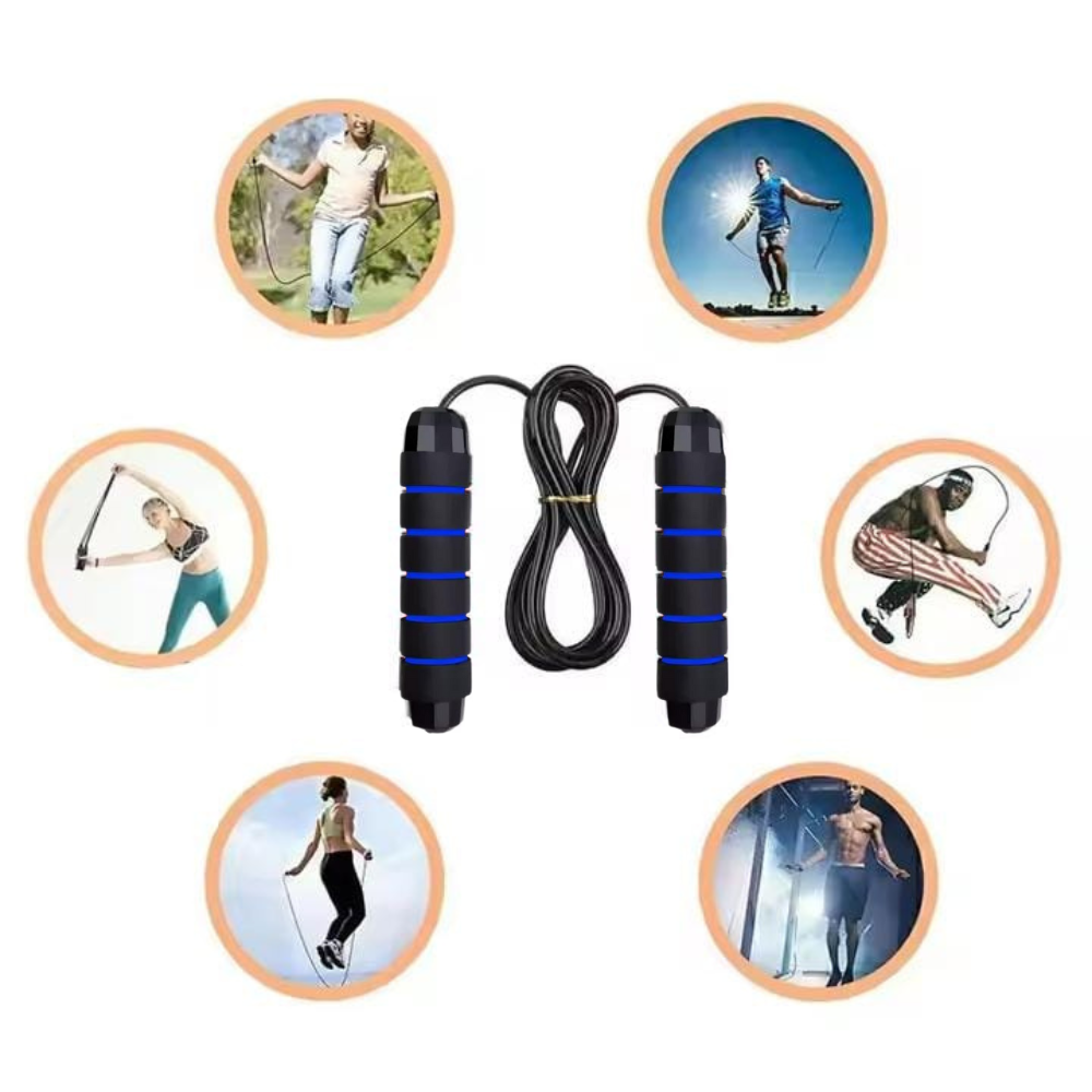 Diseñada para la Velocidad y el Rendimiento. La Cuerda de Salto está pensada para que te concentres en tu ritmo, no en enredos. Los mangos incorporan rodamientos que facilitan la rotación de la cuerda, logrando saltos más rápidos y fluidos. Fabricada en PVC de gran durabilidad, esta cuerda es ligera pero resistente, y sus agarres antideslizantes te aseguran un control total y cómodo durante toda tu rutina.