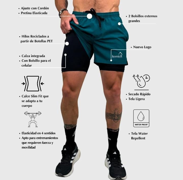 SHORT DEPORTIVO 2 EN 1 GREEN | KONKO