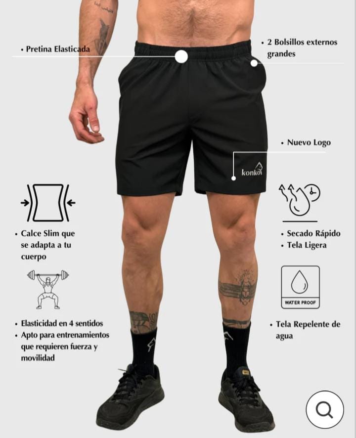 SHORT DEPORTIVO FLEX NEGRO | KONKO